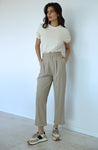 מכנסים אלגנטיים בגזרה מושלמת קלילה, עשויה מבד נשפך בשילוב פנסים וגומי בחלק האחורי. המכנסיים באורך 7/8 בגזרה ישרה