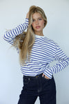 חולצת בייסיק מבד כותנה נעים למגע, בגזרה יחסית משוחררת בשילוב פרינט של פסים לאורכו