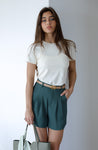 שורט אלגנטי מבד נעים נשפך, בשילוב פנסים בחלק הקדמי וגומי במותן האחורי