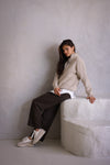 סריג מבד צמר (6%) עבה איכותי נעים וקוזי, בשילוב רוכסן בצבע כסף באיזור החזה וצווארון גולף גולף קטן