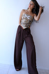 מכנסיים בגזרה רחבה עם מותן אלסטית ושרוך קשירה עדין, לנוחות מרבית והתאמה אישית.הבד הרך והזורם יוצר תנועה טבעית ומראה קז'ואל אלגנטי שמתאים לכל שעה ביום.הפריט המושלם למלתחה מודרנית – קליל, מחמיא ונוח בלי לוותר על סטייל.
