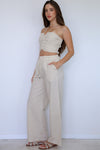 סט קליל ומלא סטייל שיבולת שועל בהיר – מושלם לקיץ הישראלי.הטופ המחמיא עם כיווצים וקשירה לצוואר משתלב בול עם המכנסיים הרחבים והנוחים.לוק קז'ואלי עם טאץ' של שיק – קל ללבוש, כיף לשלב, ותמיד מרגיש נכון. ניתן לרכוש אותם גם בנפרד. החולצה מגיעה במידה OS - אורך: 24 ס״מ | היקף חזה: 72 ס״מ | היקף המותן : 62 ס״מ