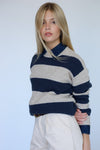 הכניסי למלתחה שלך פריט על-זמני שמשלב נוחות עילאית עם סגנון מדויק.סריג קמדן עשוי מצמר (10%)  איכותי, רך ונעים למגע, המתאים במיוחד לעונת המעבר והחורף. הדגם מציג עיצוב מינימליסטי עם פסים רחבים בגוונים קונטרסטיים – כחול נייבי ושיבולת – ליצירת מראה על-זמני עם נוכחות.הסריג בעל גזרה מחמיאה, קו כתפיים קלאסי, וצווארון עגול נקי שמשתלב בקלות עם כל לוק – בין אם את בוחרת לשלב אותו עם ג'ינס בגזרה גבוהה או מכנסי קז'ואל אלגנטיים.