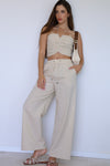 סט קליל ומלא סטייל שיבולת שועל בהיר – מושלם לקיץ הישראלי.הטופ המחמיא עם כיווצים וקשירה לצוואר משתלב בול עם המכנסיים הרחבים והנוחים.לוק קז'ואלי עם טאץ' של שיק – קל ללבוש, כיף לשלב, ותמיד מרגיש נכון. ניתן לרכוש אותם גם בנפרד. החולצה מגיעה במידה OS - אורך: 24 ס״מ | היקף חזה: 72 ס״מ | היקף המותן : 62 ס״מ