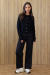 קרדיגן סריג דק ונקי בצבע שחור , בעל גזרה ישרה וכפתורים עדינים המעניקים לו מראה אלגנטי ומאופק.פריט רב־עונתי המספק שילוב מדויק בין נוחות יומיומית לסטייל מחויט ומעודן.