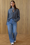 חולצה מכופתרת, שהיא לגמרי גם ג׳קט, או בלייזר דק לאוהבות הז׳אנר. עשוי מבד נשפך בשילוב כפתורים תואמים בגזרה משוחררת. שימו לב שהחולצה תואמת למכנסי טוני...לאוהבות הסטים.