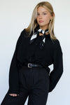 מטפחת מבד דמוי סאטן מבריק בצורת ריבוע בשילוב פרינט גאומטרי בצבעים מושלמים מידת המטפחת: 65 ס״מ על 65 ס״מ