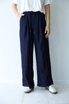 מכנסיים שהם מיקס בין אלגנט לקז׳ואל ליומיום. מכנסיים בצבע כחול נייבי כהה בגזרה משוחררת מבד דנים דק ואיכותי. למכנסיים שרוך וגומי במותן להידוק נכון