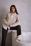 סריג מבד צמר (6%) עבה איכותי נעים וקוזי, בשילוב רוכסן בצבע כסף באיזור החזה וצווארון גולף קטן