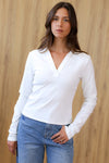 .חולצת כותנה חלקה עם מחשוף וי וקולר מינימליסטי - השלימי את מראה היומיום שלך עם חולצה קלאסית ונקייה, שמשדרת אלגנטיות טבעית ונוחות בלתי מתאמצת. עשויה מבד כותנה רכה איכותית ומעט אלסטית, בעלת תחושת מגע נעימה על העור וגזרה מחמיאה שמונחת בצורה מושלמת על הגוף.